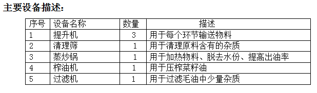 處理量1-200t/d,以日處理3t菜籽油為例